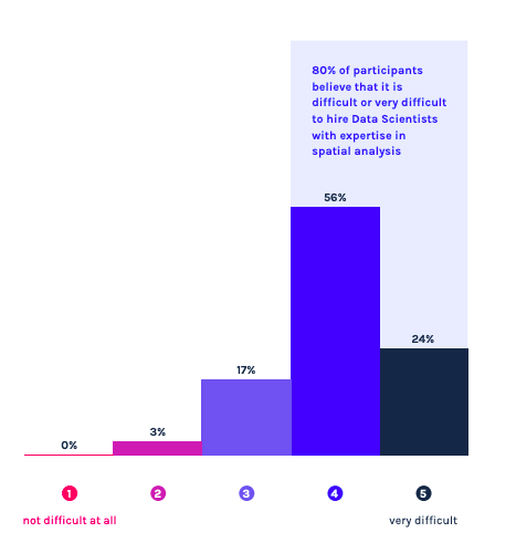 80%의 응답자가 공간 분석에 특화된 데이터 사이언티스트를 찾는 것이 어렵다고 답변했습니다.