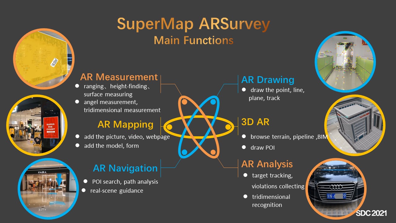 슈퍼맵 GIS 10i(2021) 제품 시리즈에서는 AR 지도, AR 매핑, AR 포지셔닝, AR 분석 등 기능이 강화 되었어요. 새로운 지도 제작 도구인 SuperMap AR Survey는 Geographic Entity를 빠르고, 정확하게 처리하여 실내 3D 데이터 수집 및 3D 모델링 비용을 크게 절감 시켜 주지요.