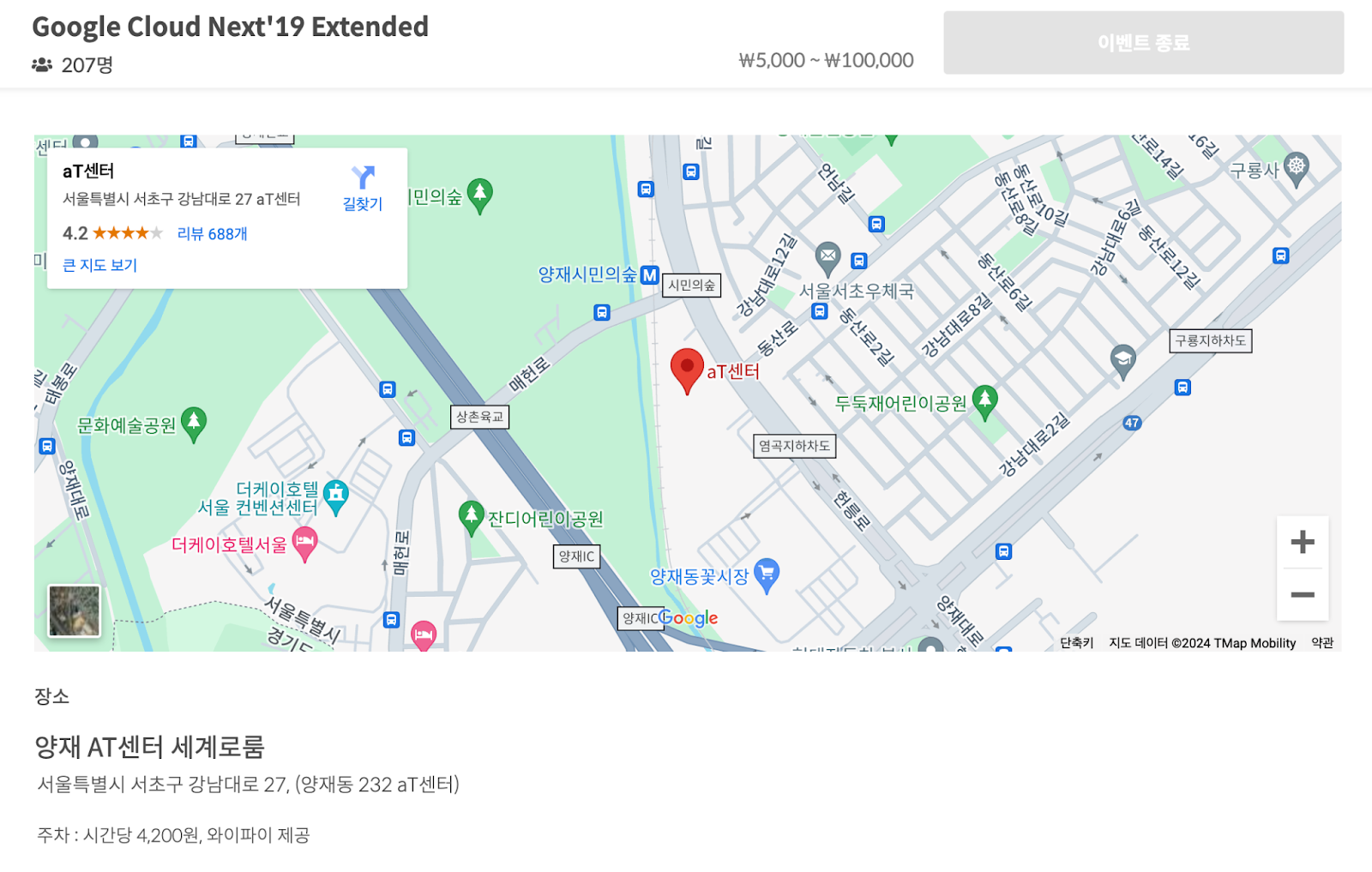 오프라인 세미나나 컨퍼런스에 참가 신청할 때, 행사장 위치가 표시된 지도를 보신 적 있으신가요? 대부분의 행사 참여 플랫폼 상세 페이지는 참가자의 편의를 위해 개최 장소를 함께 확인할 수 있도록 지도를 임베드해 놓았습니다. 이처럼 앱/웹 서비스에 구글 지도 기능을 구현하기 위해서는 지도 API를 호출해야 합니다. 특정 위치를 시각화할 수 있는 지도 기능을 웹/앱에 구현하고 싶다는 생각해 보신 적 있나요? 이 포스팅을 보고 계신 여러분도 API 키만 발급 받으면 쉽게 웹/앱에 지도 기능을 구현할 수 있습니다. 오늘 포스팅에서는 구글지도 API를 처음 사용해 보는 개발자 혹은 비개발자 직군을 위해 구글맵 API 키 발급 방법부터 무료 사용법, 그리고 과금 범위까지 상세히 알려드리도록 하겠습니다!🤓