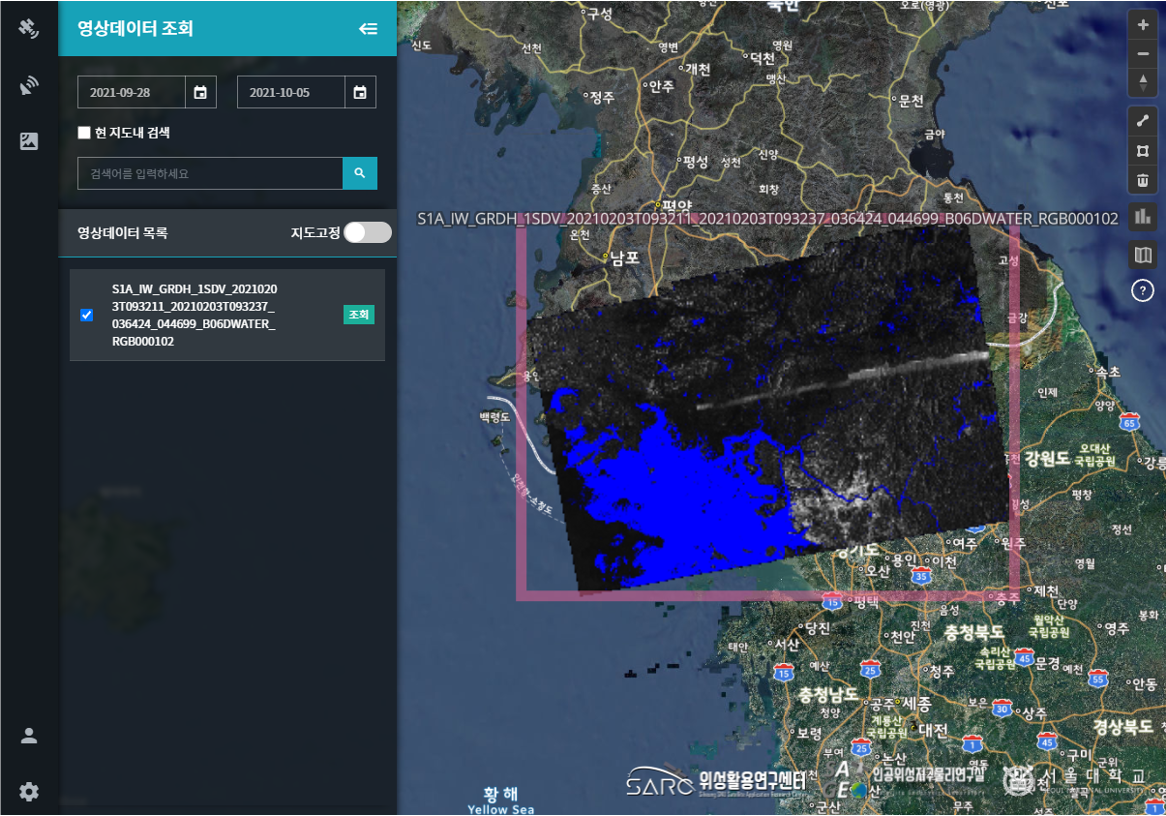 ✅서울대학교 위성활용연구센터 원격탐사 위성영상 화면 표출