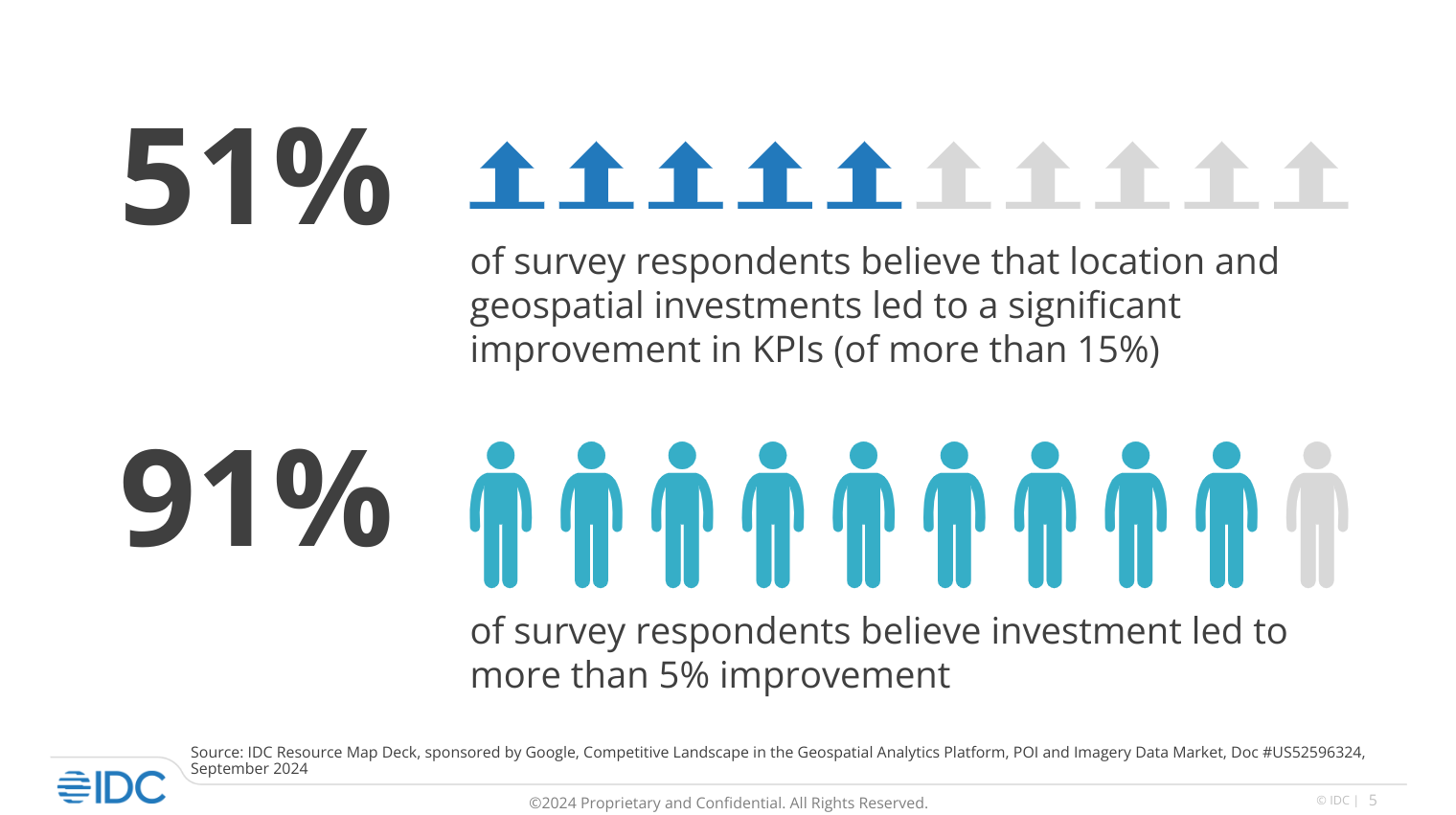 글로벌 시장 조사 기관 IDC 설문조사 결과에서 공간정보(LI)가 비즈니스 성과를
