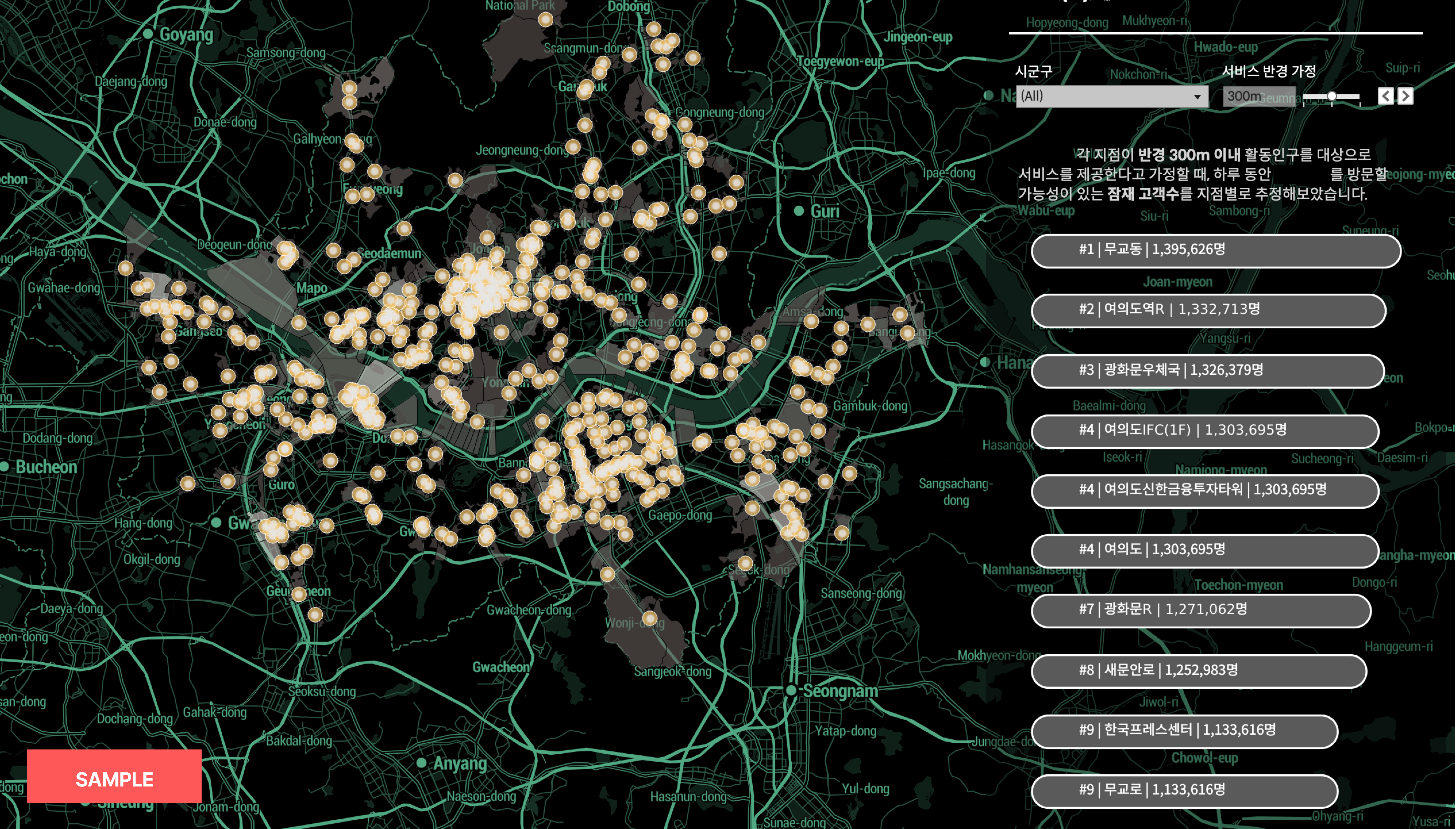 GIS 전문기업인 SPH만의 노하우로 유동인구, 소비 패턴, 소득 자산 데이터를
