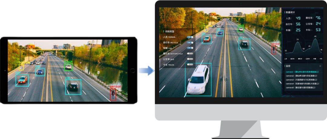 iDesktopX는 자동차, 버스, 기차, 신호등, 보행자, 물컵, 노트북 등 80가지 유형의 객체 정보를 제공합니다. 사물 유형을 구분하기 위해 다양한 사물 로고 상자의 스타일 설정을 지원하여 구분이 쉬우며, 이와 같은 타겟 정보 인식은 사람 및 자동차 교통 혼잡과 같은 실시간 모니터링에 적용될 수 있습니다.