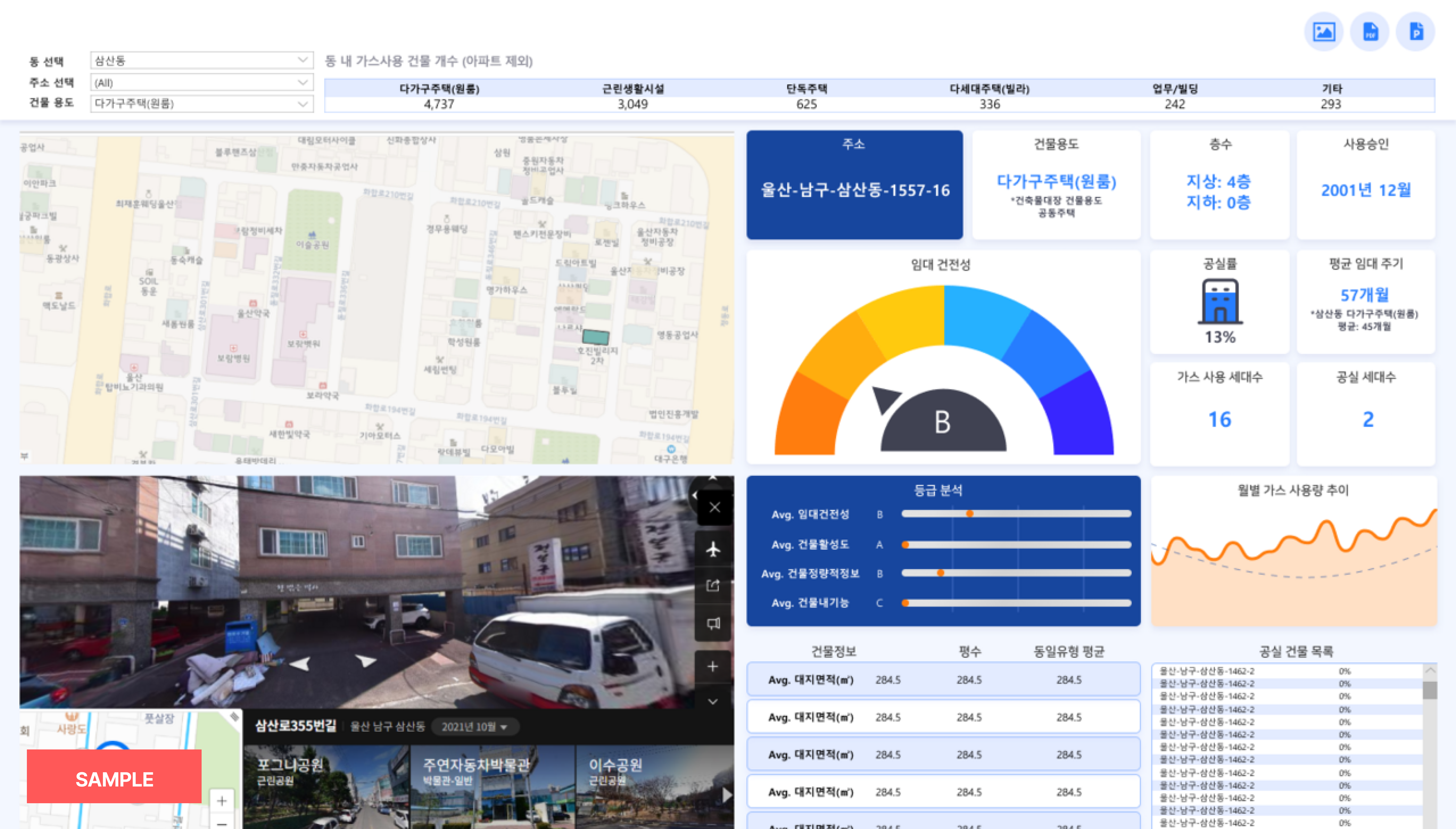 국토 격자 기반의 공간데이터와 융합하여 준비해두었어요